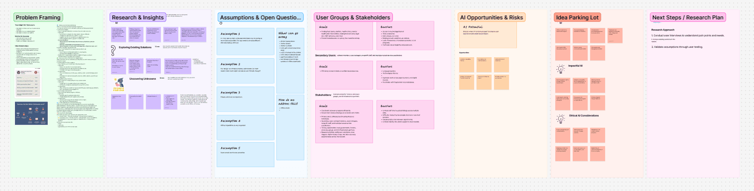 In our six-hour design sprint, we focused on one question: How might we design a trust-based, accessible platform for unhoused individuals to find reliable local resources? We began with quick research and interviews to uncover key barriers, then refined our solution using data and insights. In the final hours, we built wireframes and a prototype aligned with our designathon using AI to make resource access simple, transparent, and empowering.